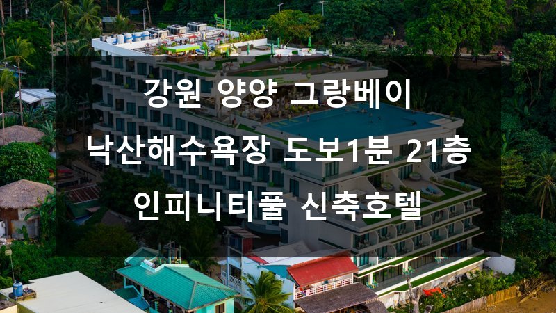 여러분, 바다를 바라보며 수영하는 상상을 해본 적 있나요? 🤔 강원도 양양의 낙산해수욕장 바로 앞, 도보 1분 거리에 위치한 그랑베이 신축호텔에서 21층 높이의 인피니티풀을 즐길 수 있는 기회를 소개합니다! 🏨🌅 여름 휴가 계획 중이라면 이곳만큼 완벽한 선택지도 드물 거예요. 지금부터 낙산해수욕장과 그랑베이 호텔의 매력 포인트를 낱낱이 파헤쳐 볼게요! 🔥