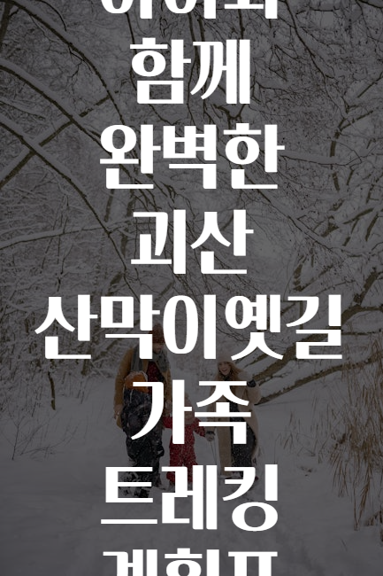 주말마다 집 안에만 갇혀 있나요? 아이와 함께 자연 속에서 즐거운 추억을 만들고 싶다면, 괴산 산막이옛길로 트레킹을 가보는 건 어떨까요? 이곳은 멋진 경치와 함께 가족이 함께할 수 있는 최적의 장소입니다! 🏞️🌳 아이들의 에너지를 소모시키면서도, 함께 이야기 나누고 새로운 경험을 할 수 있는 기회를 주세요!