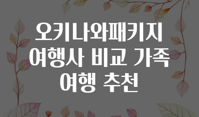 여행을 계획할 때 가장 큰 고민 중 하나는 ‘어떤 여행사를 선택해야 할까?’ 하는 문제죠. 특히 가족과 함께 떠나는 해외여행이라면 더욱 신중할 수밖에 없습니다. 🤔✨ 오키나와는 가족 단위 여행객에게 인기 만점인 여행지로, 아름다운 자연과 다양한 체험이 가득하지만 패키지 여행사마다 서비스, 일정, 가격이 천차만별이라 어떤 곳이 우리 가족에게 맞는지 헷갈릴 수 있어요.