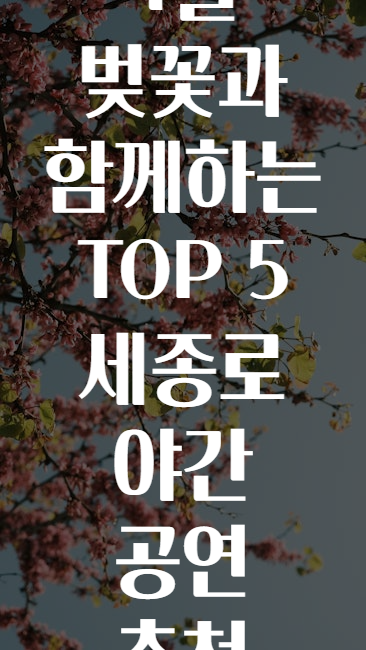 혹시 봄밤에 떠오르는 가장 로맨틱한 그림은 뭐라고 생각하세요? 🌸🌜 바로 벚꽃이 흩날리는 야경 속에서 즐기는 공연이 아닐까 싶은데요! 오늘은 ‘4월 벚꽃과 함께하는 세종로 야간 공연 TOP 5’를 소개하며, 감성 가득한 봄밤을 보내는 특별한 방법을 알려드릴게요. 🎭✨